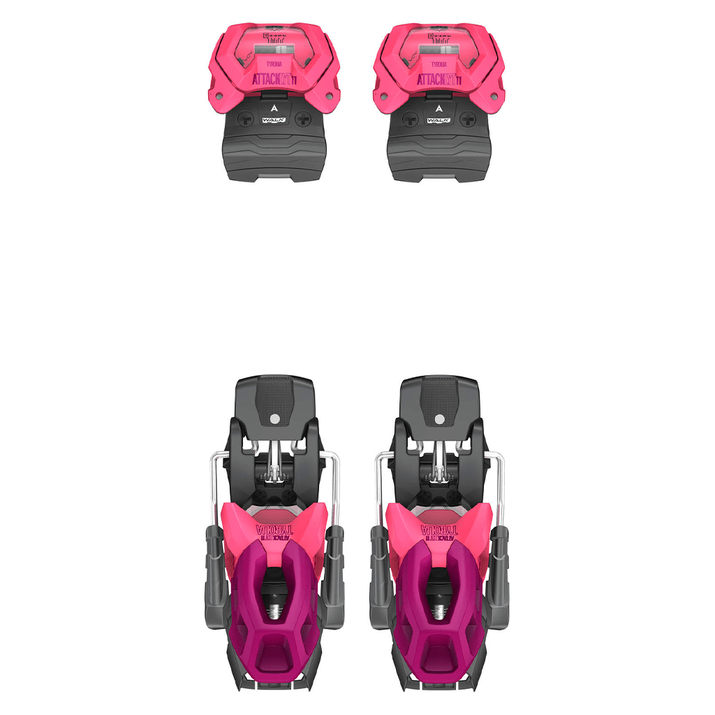 The Attack LYT 11 GW binding expands the legendary Attack line with a new model that scores with less weight (15% lighter toe), compact design and automatic toe height adjustment to adult alpine ski boots (ISO 5355 TYPE A) and adult Walk ski boots (ISO 23223 TYPE A).