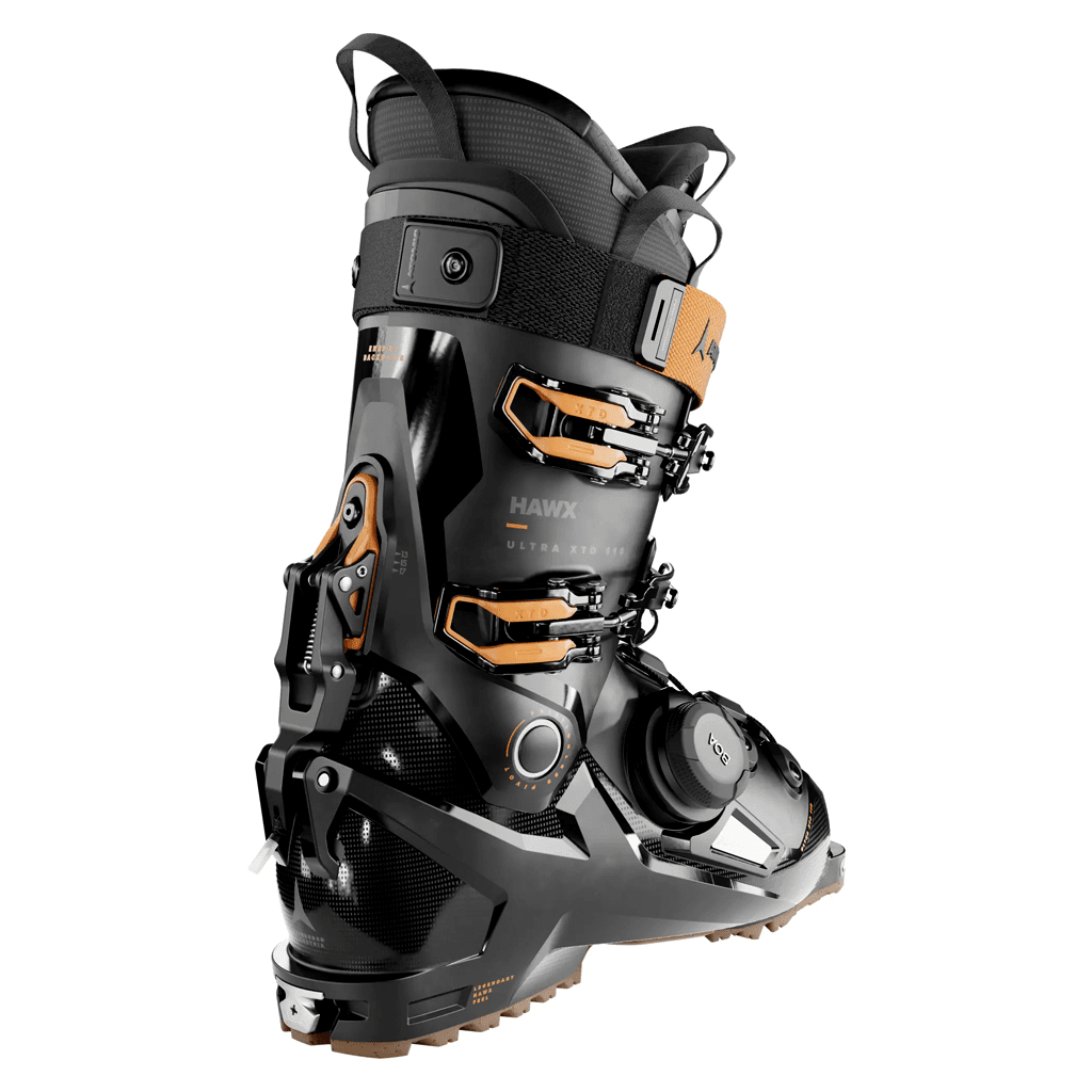 Medium flex meets walkable efficiency in the Atomic Hawx Ultra XTD 110 BOA GW, making this crossover boot the choice for adventurous freeride ski tourers looking to explore the whole mountain. Prolite construction starts with the lightest profile possible with reinforcement in critical zones for strong downhill performance. The BOA® Fit System uniformly wraps the shell around the foot to provide a secure foothold with bi-directional adjustments in an exceptionally comfortable low volume 98mm fit. Memory Fit gives a custom fit of shell and cuff, while a Mimic Gold Liner can be formed to the precise shape of the foot. The cuff offers 54º of natural movement, and a Free/Lock 4.5 ski-walk mechanism makes going uphill smooth and easy. The GripWalk Sole is compatible with all GripWalk, MN, MNC and Pin bindings. This is the ideal touring boot for those eager to explore beyond the boundaries.