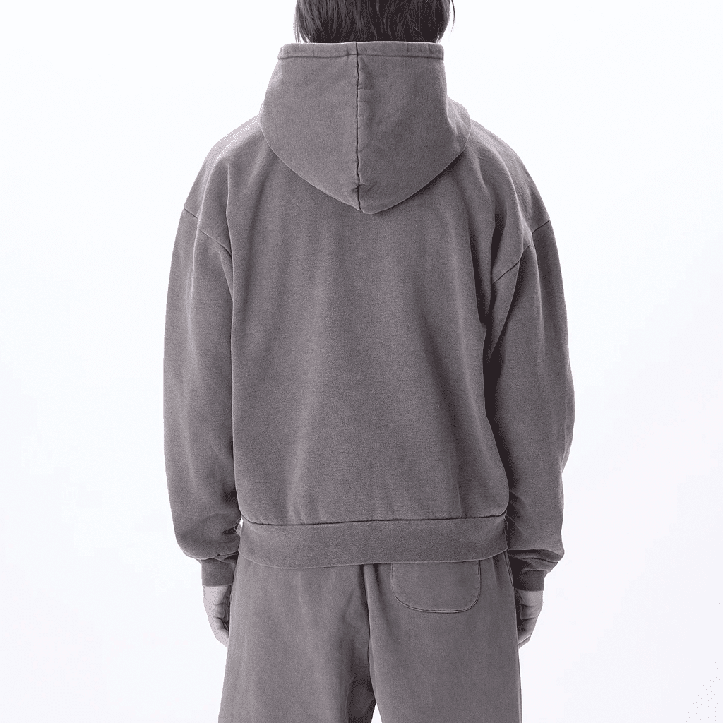 • Pigment dyed extra heavy weight hooded fleece with embroidery
