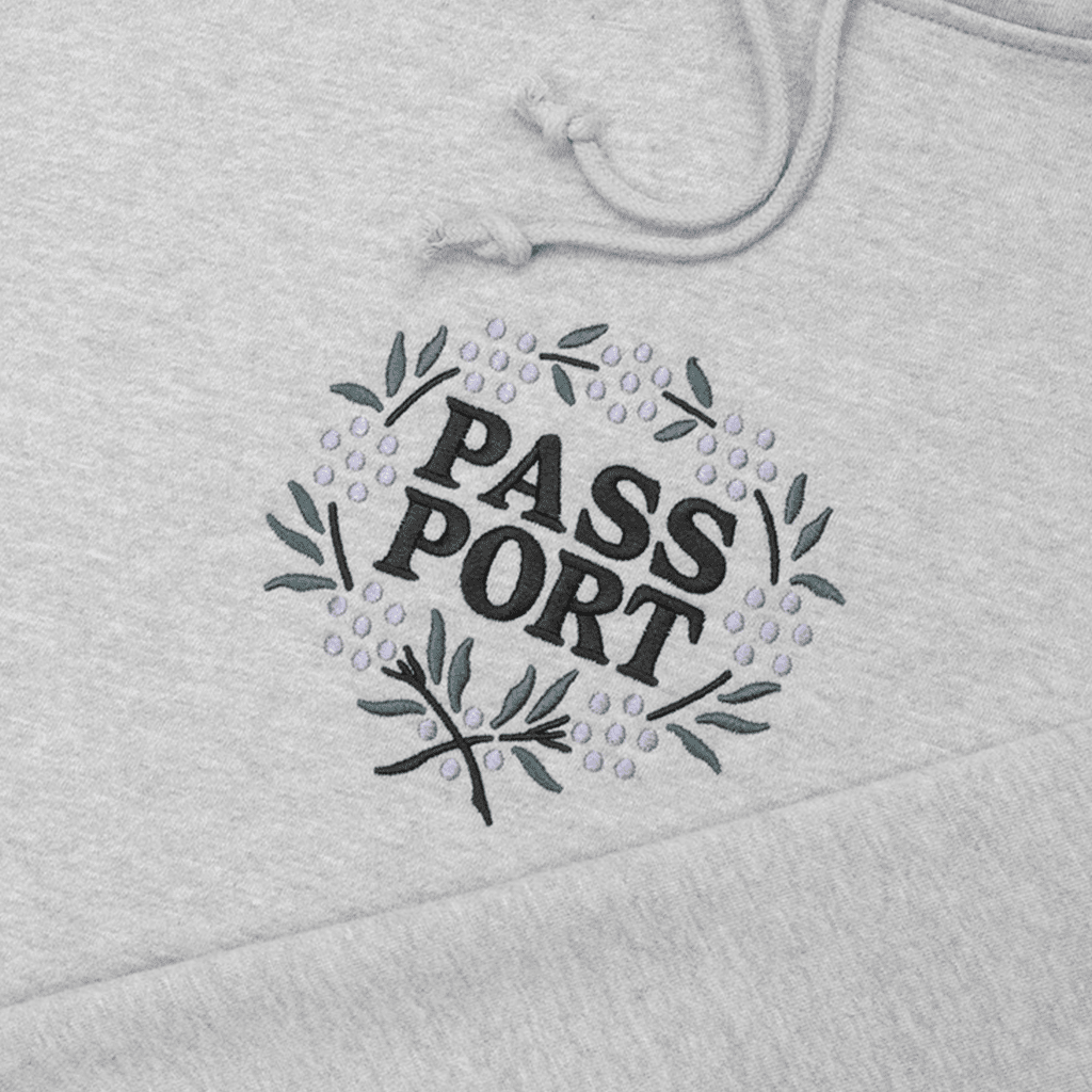 The Pass~Port jumper is made from a cotton polyester blend and features embroidery on front which is finished in the classic Pass~Port hood fit.