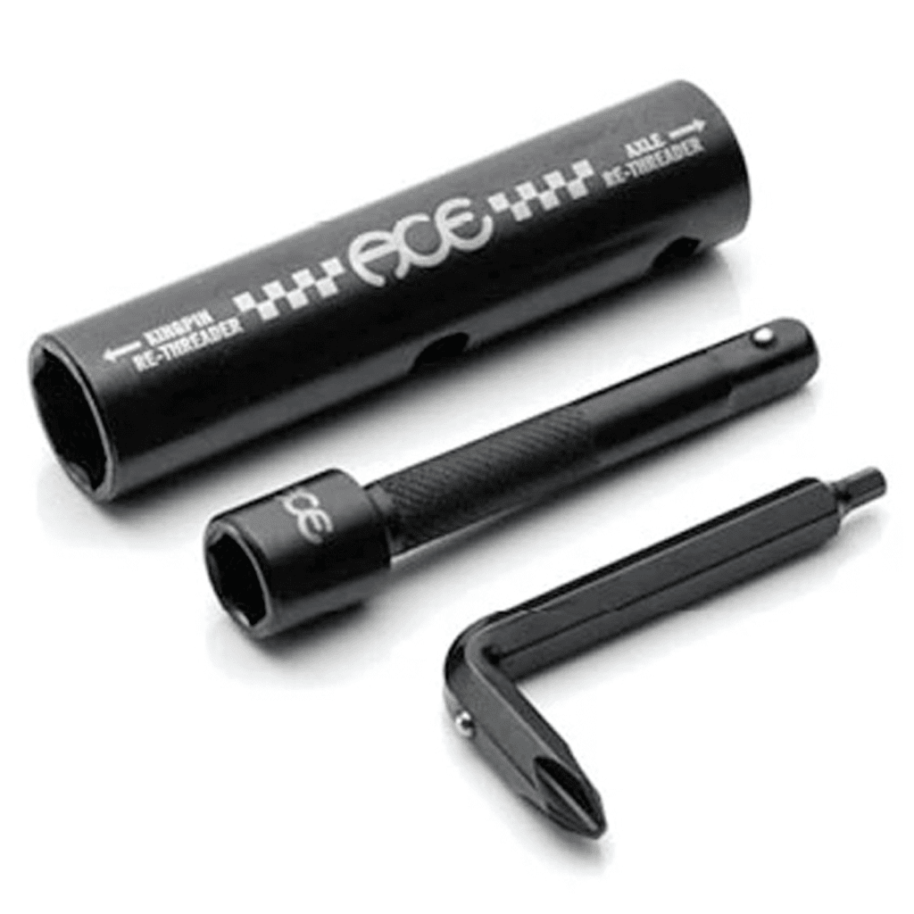 Redefining the use of a skate tool. Even smaller in size than our Classic tool. Recessed into the wheel and truck wrenches are hardened steel re-threaders to easily tune your trucks up anywhere. Knurling on the handle mounting hardware piece ensures ease of use and in a pinch can be used to file your griptape around the edge of your board. Check-ball engagement mechanism on the Phillips/Allen key and mounting hardware tool prevents loss.