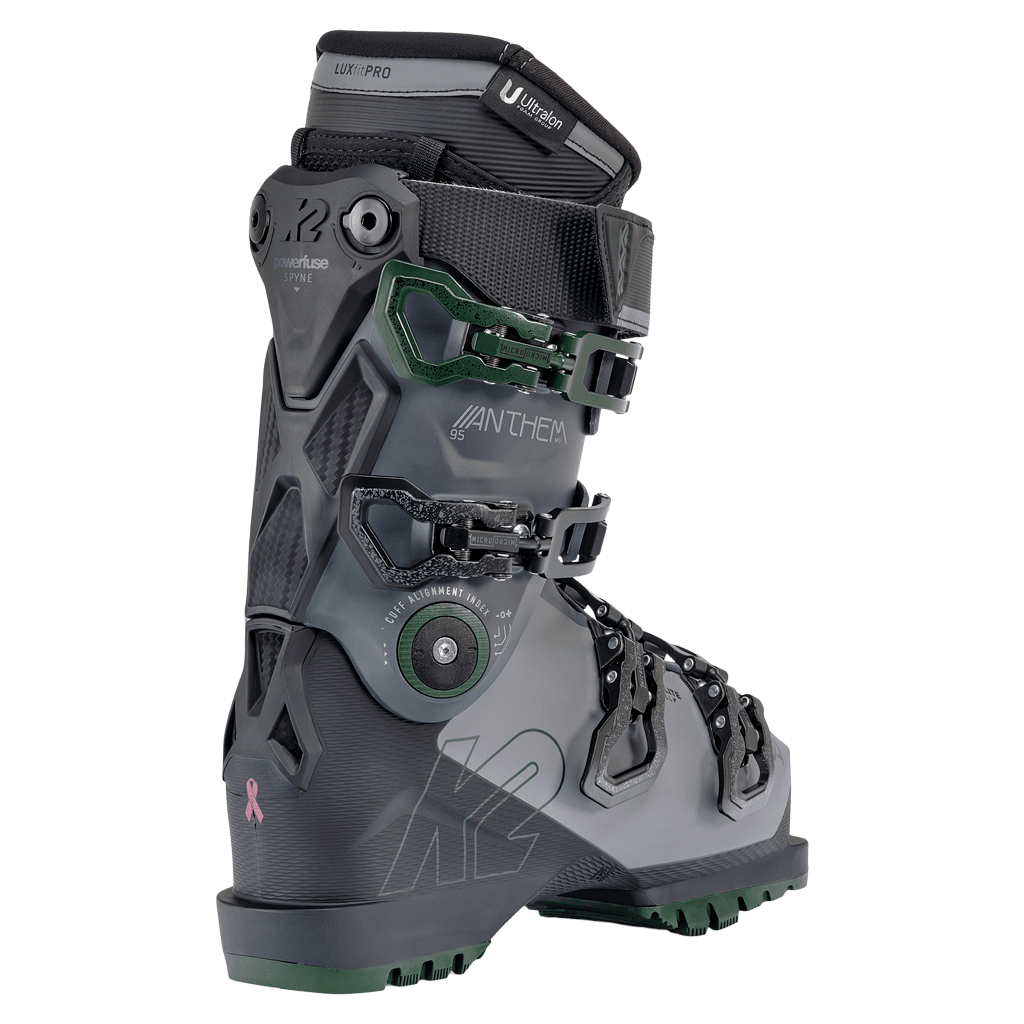 The Anthem 95 is a great introductory boot for the athletic skier looking to level up their skills. Outfitted with classic Anthem construction — a Powerlite Shell, Powerfuse Spyne and an Adjustable Cuff, the Anthem 95 pairs responsiveness with a medium flex. For the no-frills, no fuss skier, the Anthem 95 is the perfect pairing.