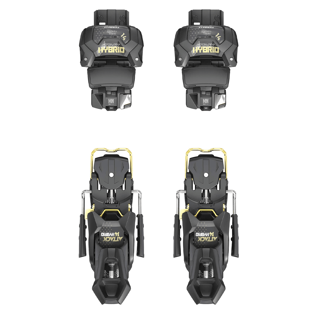 The new Attack HYBRID 14 MN/PT combines ultimate ascent performance with uncompromising downhill characteristics. Without tools or compromise, the pin toe is swapped for the alpine toe and the Attack HYBRID transforms from a full touring binding into a powerful freeride binding, with more safety and performance for any descent and any terrain.