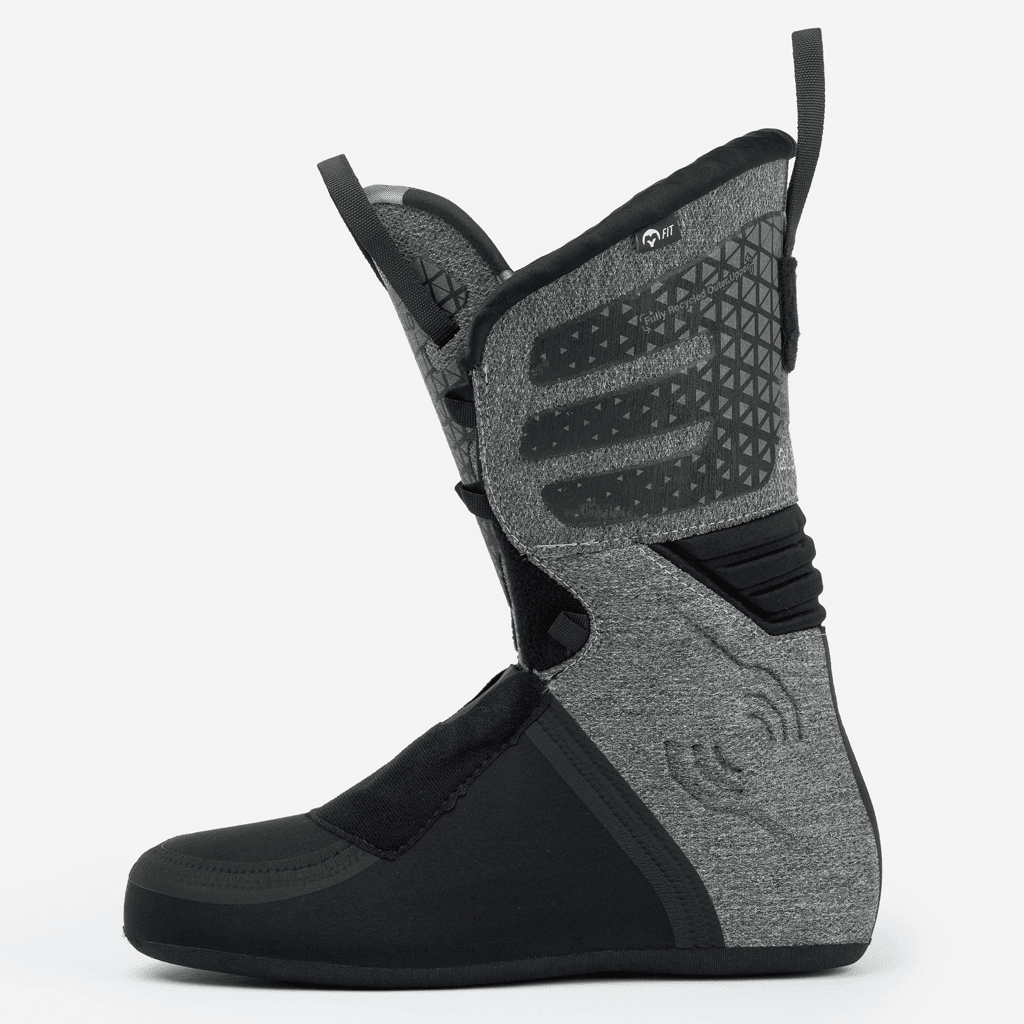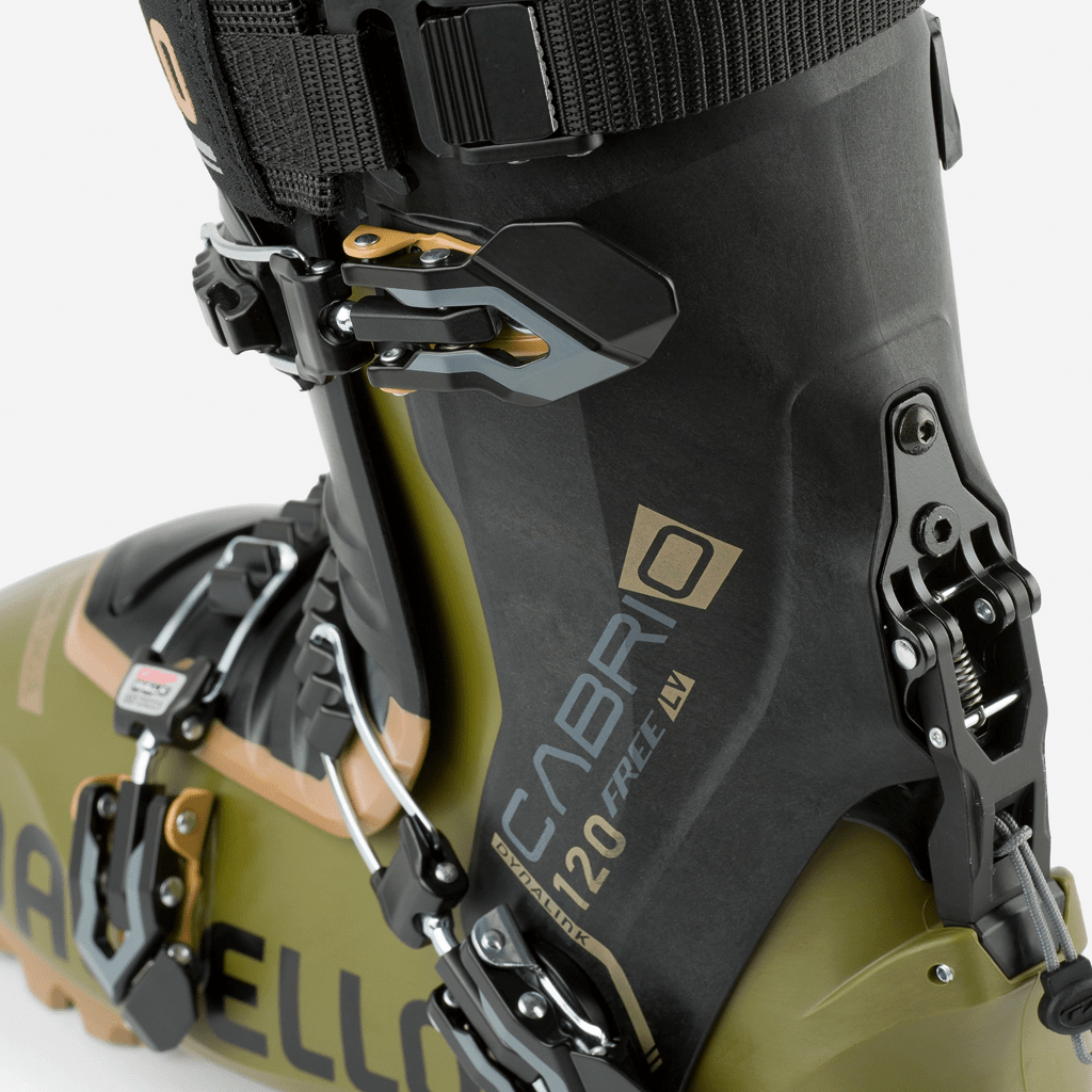 The LV FREE Cabrio with 120 Flex is designed for all free-tourers who enjoy going uphill, but who want to focus on the downhill runs that follow in open terrain without sacrificing comfort and fit. The Instant Fit (IF) Hike PRO inner boot has direct contact with the foot. Dalbello AUTOFIT technology with a memory foam tongue complements the liner for a perfect fit on any foot shape, with PuRE (Polyurethane Recycled Enforcement) technology for more efficient force transmission to the shell. The 3-piece design, what gives the boot its name Cabrio, provides controlled descents on unmarked terrain. The three-part structure enables even flex, harmonious cushioning and stable lateral and heel support. A movable, ergonomically improved Pebax tongue makes it easier to get in and out. For better interaction with the shell, its profile has also been adapted and supplemented with a softer plastic in the crucial areas – for more flexibility. Removing the tongue in hike mode is now a thing of the past. A simple switch between ascent and descent mode is made possible by a ski-walk mechanism, a locking system and a Powerband with quick release function.