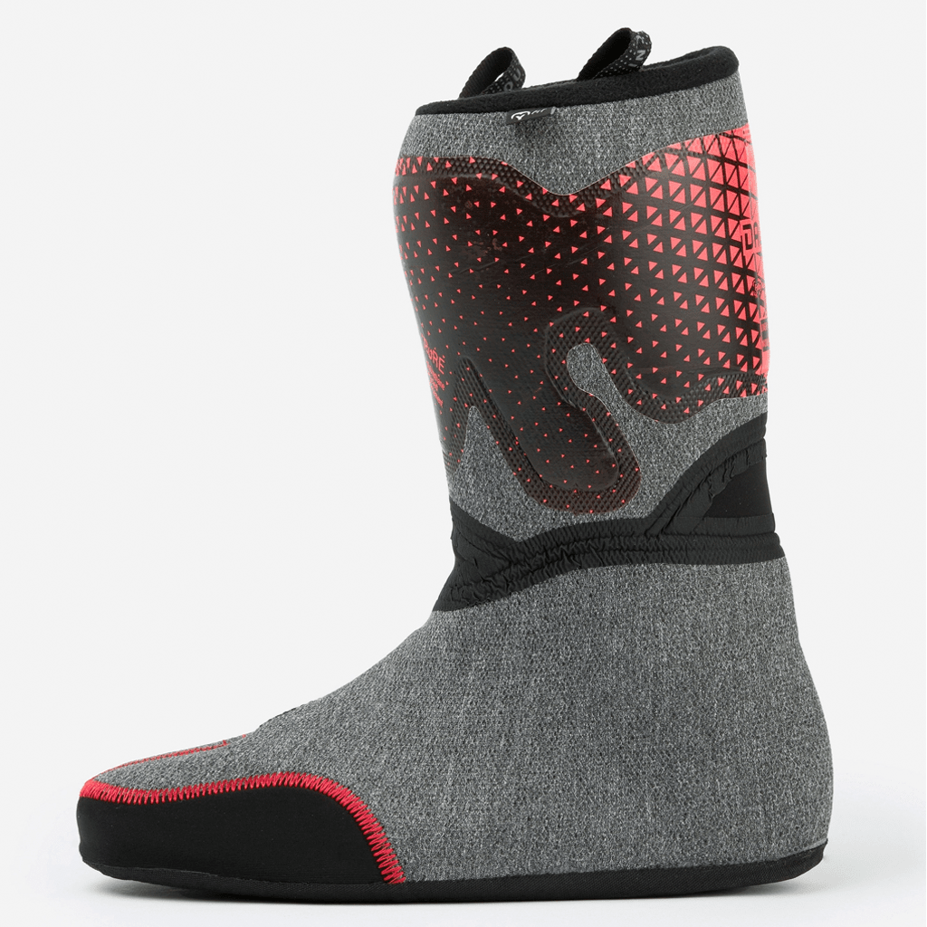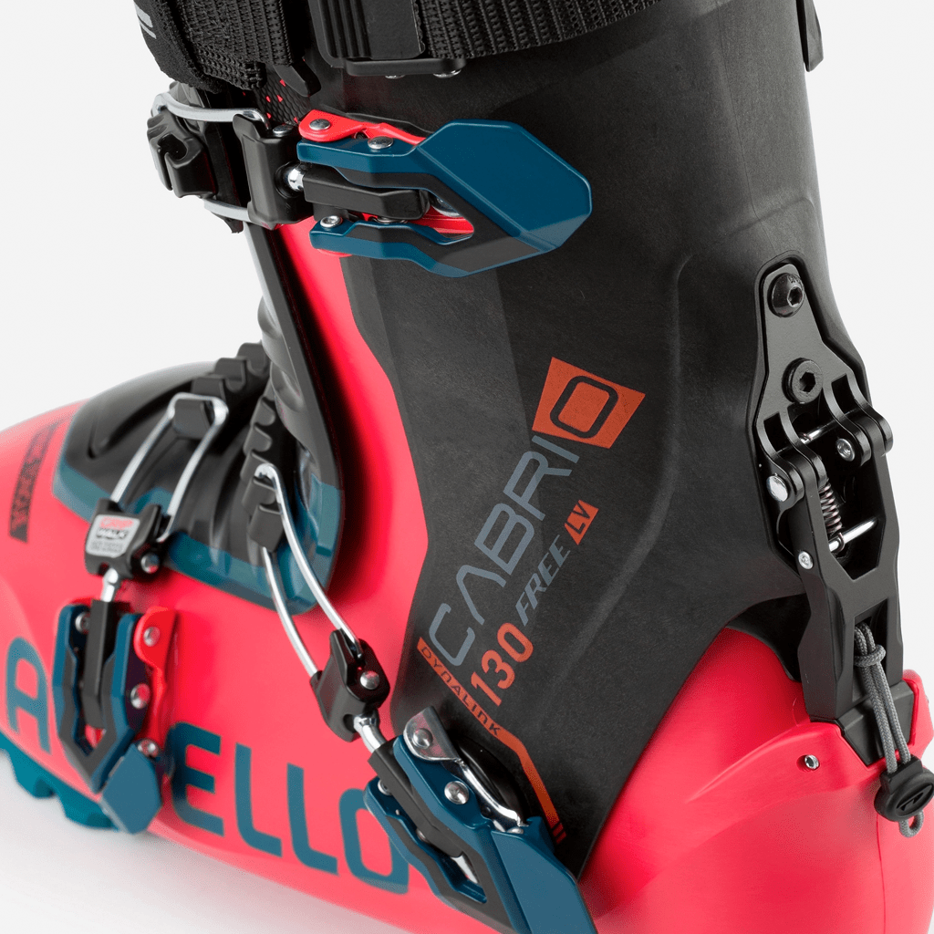 The LV FREE 130 3DWRAP Cabrio with 130 Flex was specially developed for free-tourers and appeals to all those who already had their sights on the descent while going up. The core of the boot is the 3DWRAP Max Hike liner with PuRE (Polyurethane Recycled Enforcement) technology. The liner ensures outstanding performance on ascent and descent and features exceptional comfort and an optimum fit. Based on the Dalbello Cabrio LV platform, the cabriolet/convertible design allows for direct, progressive power transmission as well as firm heel and lateral support. The three-part structure of cuff, shaft and external tongue with ly adapted profile provides an even flex and turns any open terrain, no matter how bumpy, into a playground. What's more, the bi-injected tongue has been made more user-friendly. Thanks to softer material in just the right places, in addition to the usual stability during the descent, it offers enough flexibility so it doesn't have to be removed during the ascent. The LV FREE 130 3DWRAP Cabrio is rounded off by a ski-walk mechanism for a smooth switch from descent to ascent mode. A locking system and a Powerband with quick release function also make handling easier – even when wearing gloves.