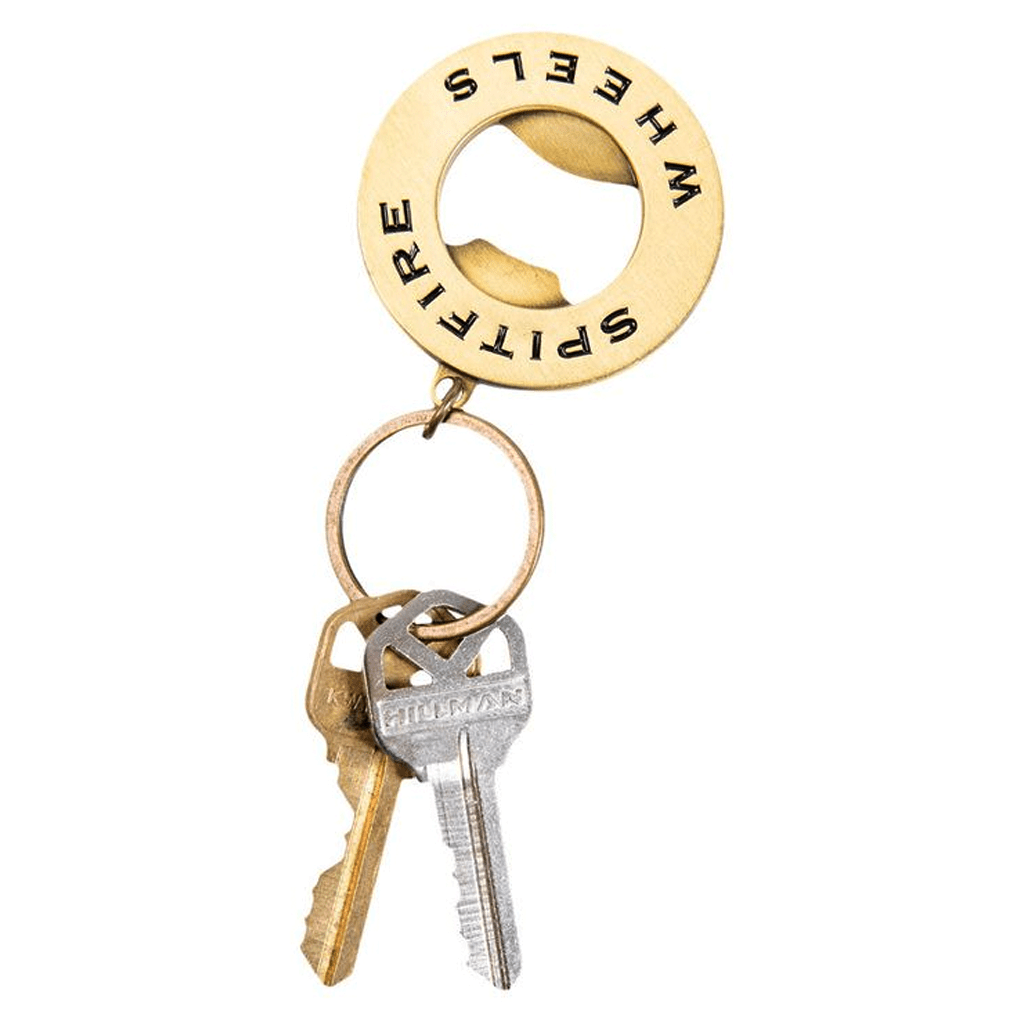 About Spitfire Classic swirl bottle opener keychain - Light antique brass