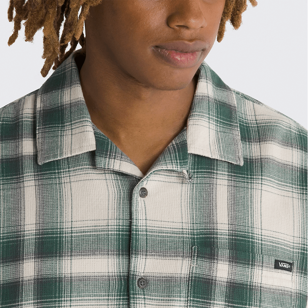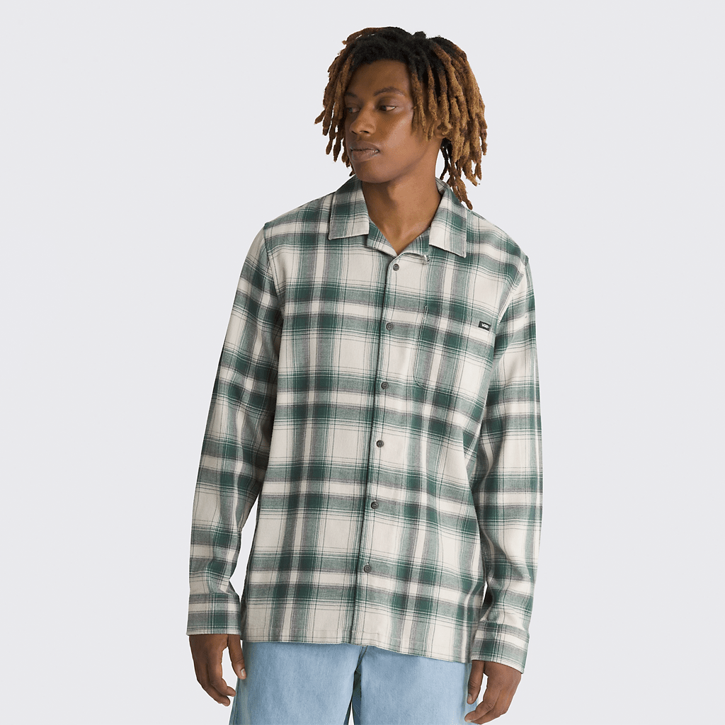 Keep warm during those cooler days with the Eastridge Long Sleeve Buttondown Shirt. This plaid long sleeve camp woven features a full buttondown front and left chest pocket with clip label.