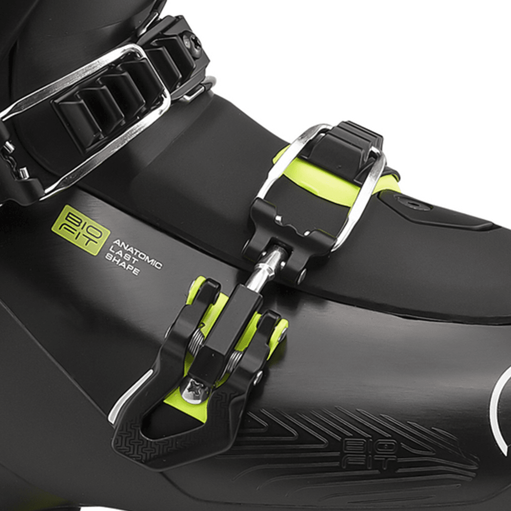 “Hard” and “Soft” settings let skiers modify boot flex to match terrain and preference.