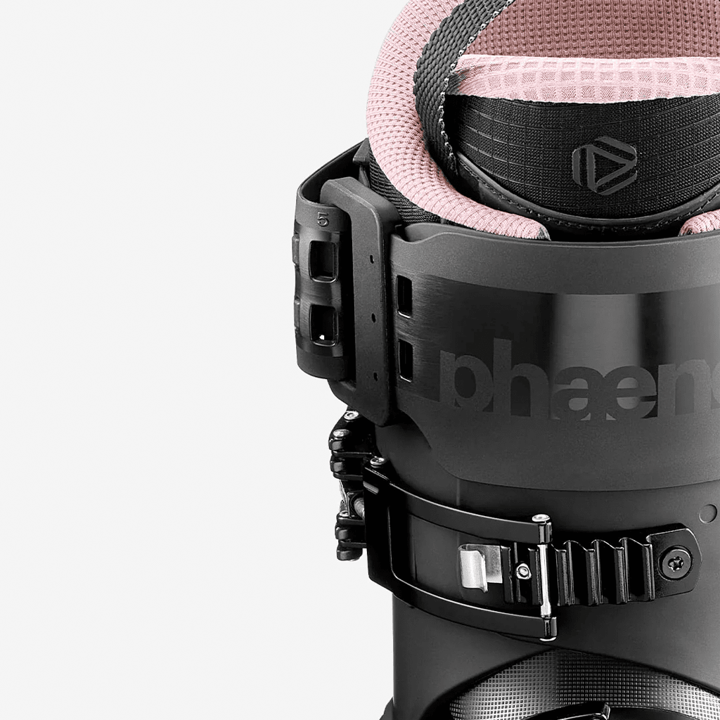 The innovative hybrid cabrio / overlap construction combines the best of both worlds: the close fit and edge control of the overlap, and the progressive flex of the 3-piece. Paired with the patent-pending phenom strap, the fs 01 90 provides rebound, shock absorption, and exceptional flex control. The elasticity of the strap generates tangible rebound through your turns, for increased power transmission, turn initiation precision, comfort and predictability.