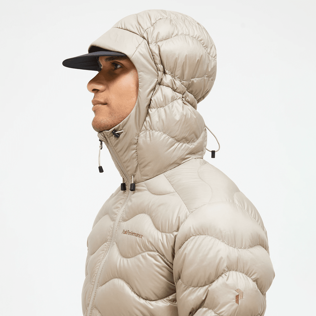 Our Helium range, with its iconic quilt pattern, has been a bestseller for over ten years! This hood jacket is extremely lightweight and packable. The wind- and water repellent shell in combination with the premium 90/10 down insulation, makes this great for any outdoor activities. Wear it as an outer layer or under a shell jacket for extra warmth. We only use responsibly sourced down, fully traceable through the Track My Down® program. Made from PFC-free recycled polyamide.