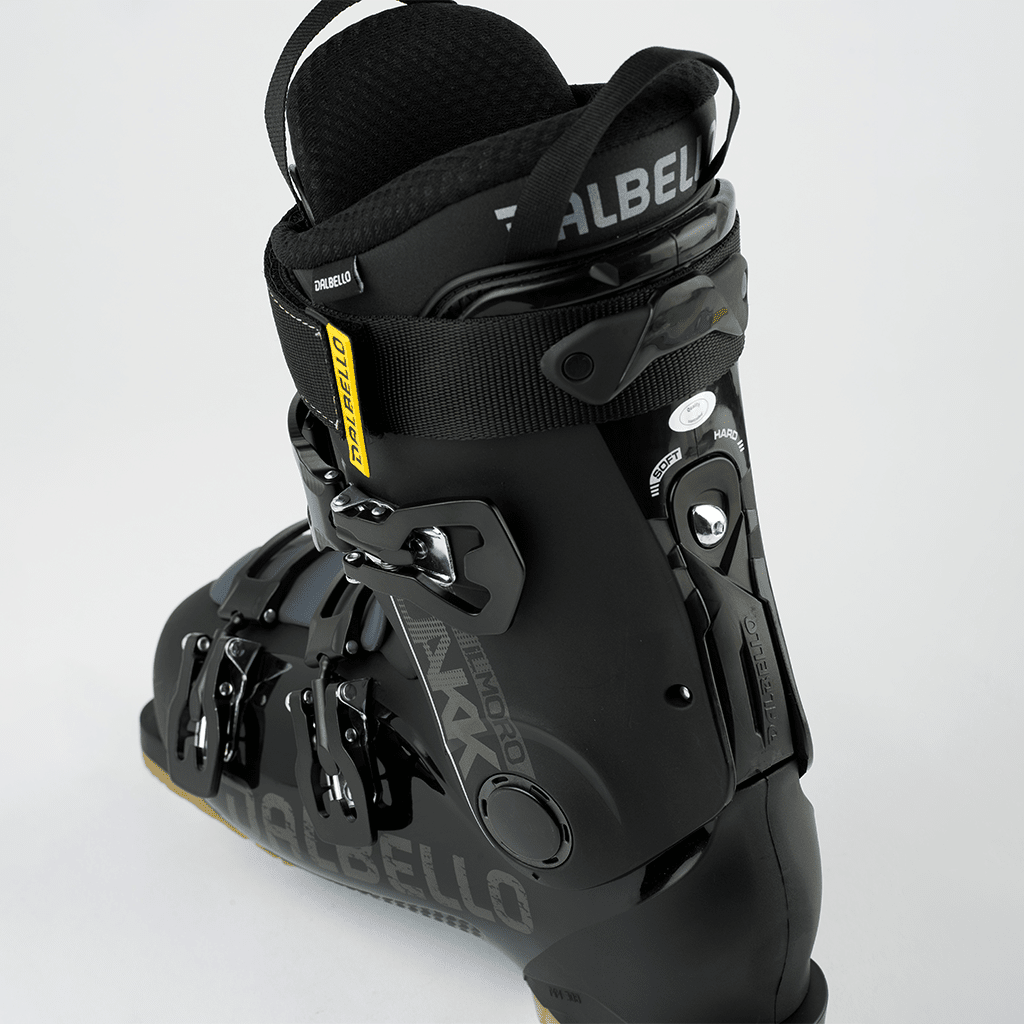 Dalbello's unique Cabrio construction combines a boot shell/boot cuff assembly with an external Kinetic Response Tongue closure which enables a smoother and progressive power transmission same as great shock absorption. Together these features provide great versatility and better adaptability on different kind of snow and uneven terrain.
