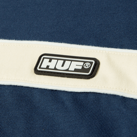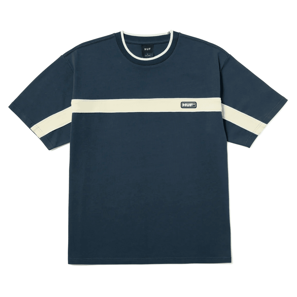 • 1x1 rib-knit with yarn-dyed stripe at collar