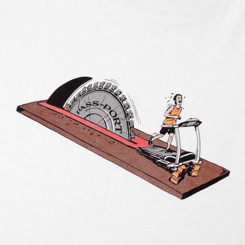 The Pass-Port Keep Running tee in white is made from 100% cotton and features a screen printed graphic on front. It offers the signature Pass-Port fit.