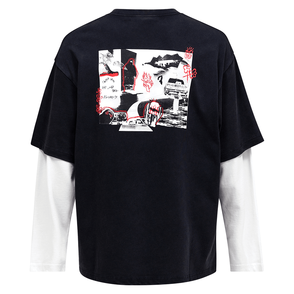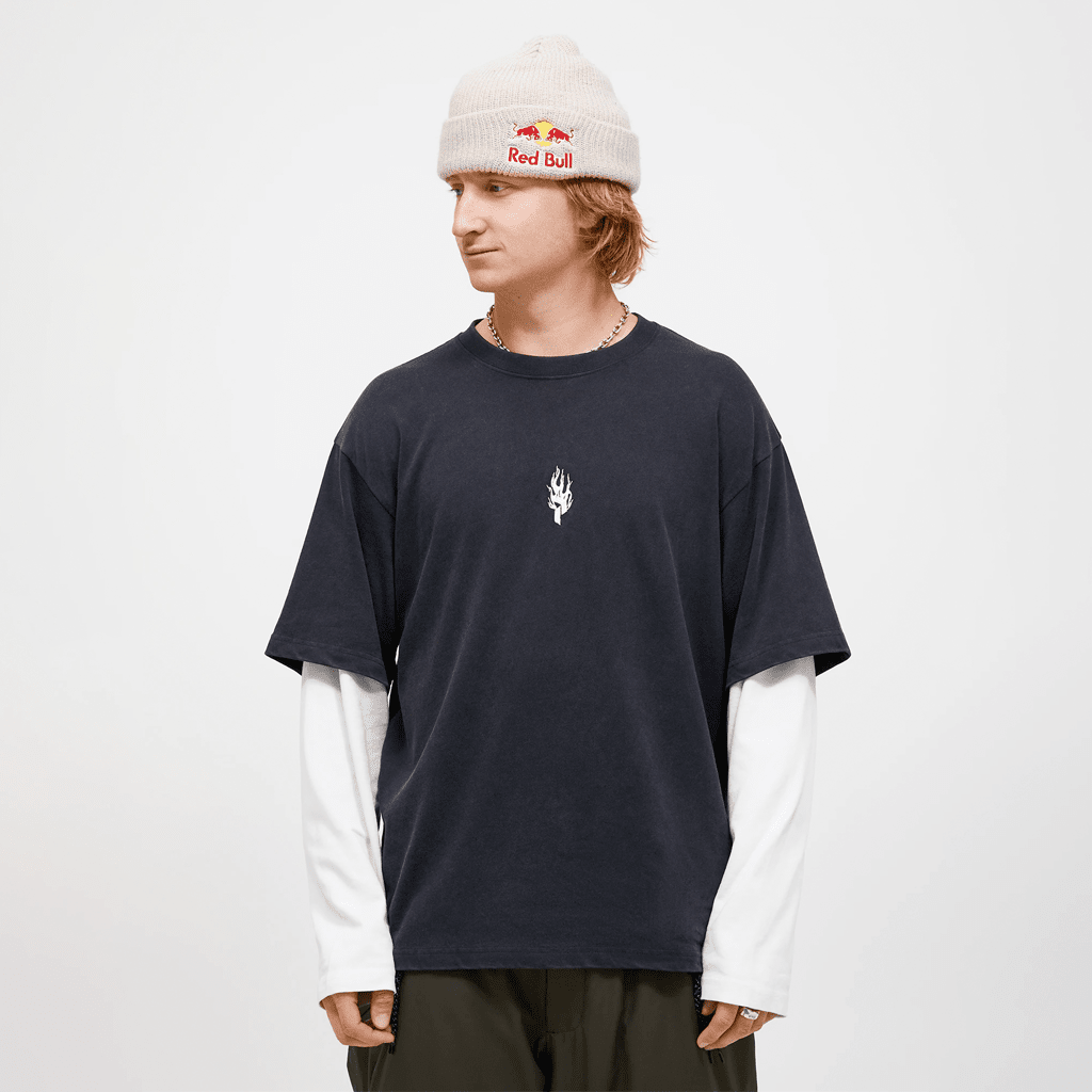 This long-sleeved t-shirt is part of a collaboration with Max Palm to capture his unique style on the slopes. The collection features exclusive graphics created by the freeskier. This old-school style features a boxy t-shirt with sewn-in sleeves. Made of a heavy cotton jersey with a washed-out effect to give it a worn look.