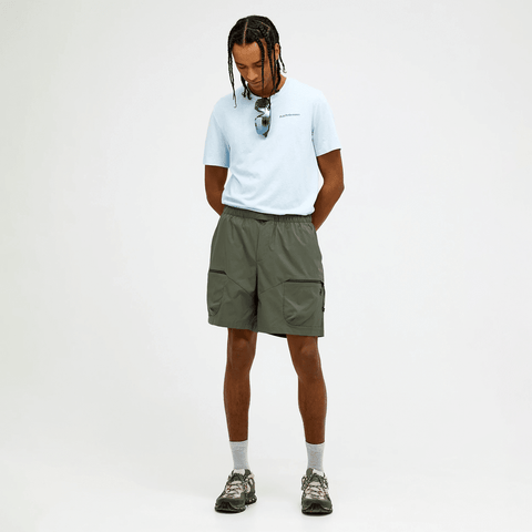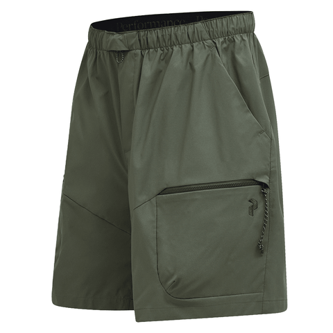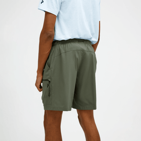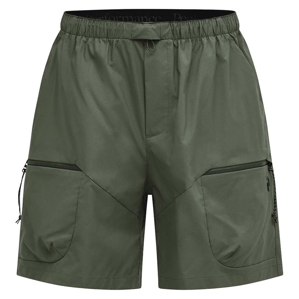 These are the go-to hiking shorts for all-mountain performance and everyday life. Cut for a straight, relaxed fit in a lightweight, stretchy fabric that repels water. The elastic waistband can easily be adjusted with the front cord, while the visible back cord allows you to tuck in extra layers when needed. Two zip leg pockets keep your smaller belongings in place during any activity.