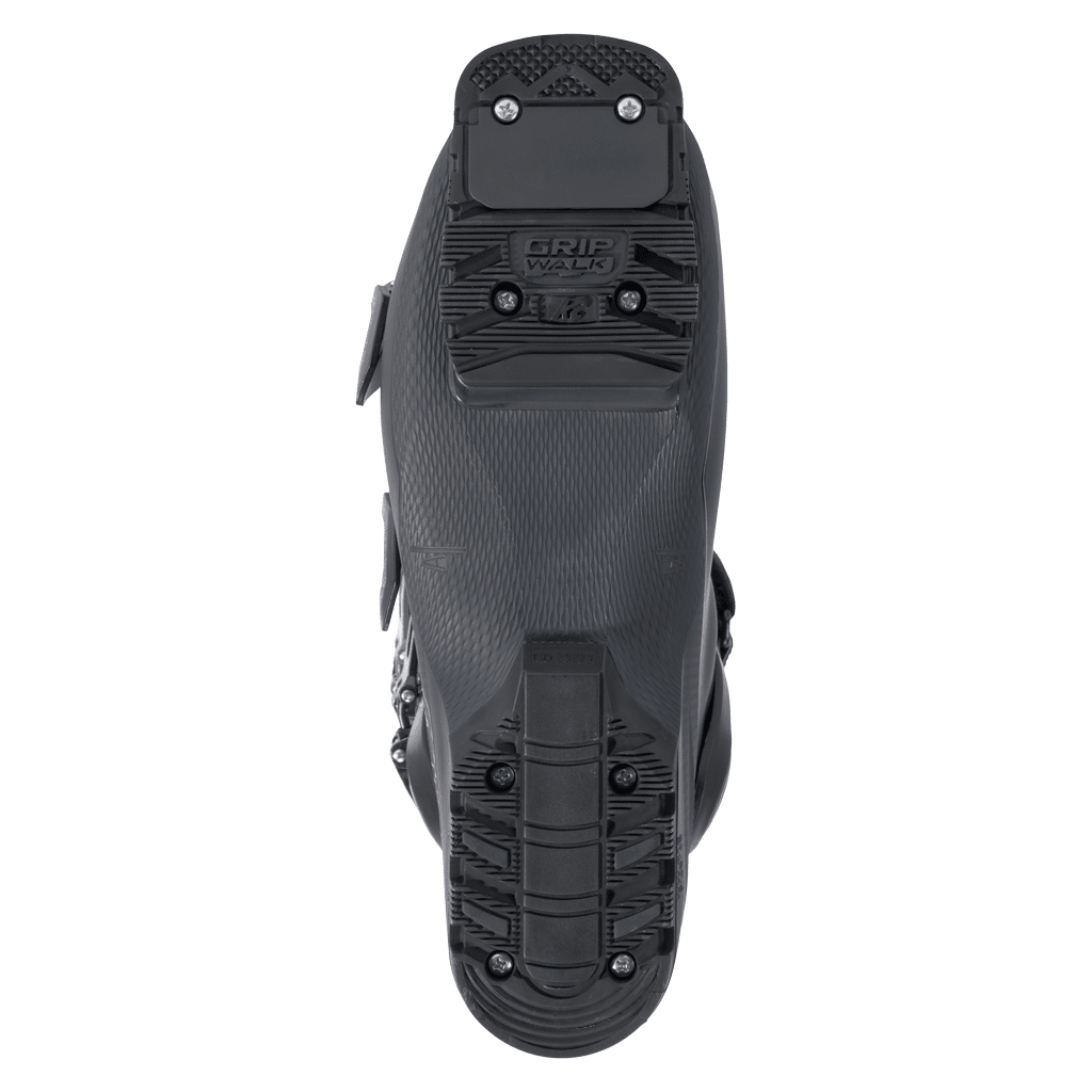 Preinstalled ISO 23223 rockered soles improve walking grip and comfort while ensuring safe release and efficient power transfer in GripWalk-compatible bindings.