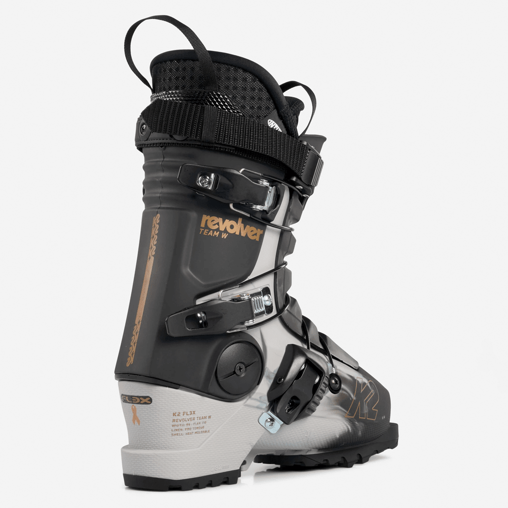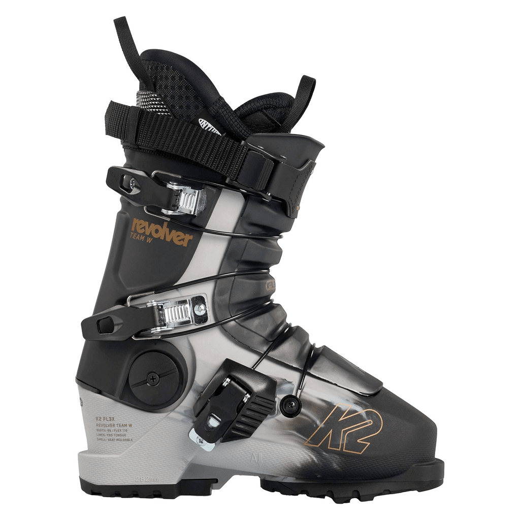 The Revolver Team W features a customizable Intuition Pro Tongue Liner, a 110 Flex Tongue, Fully Heat Moldable Revolver Plus Shell, and Grip Walk Outsoles.